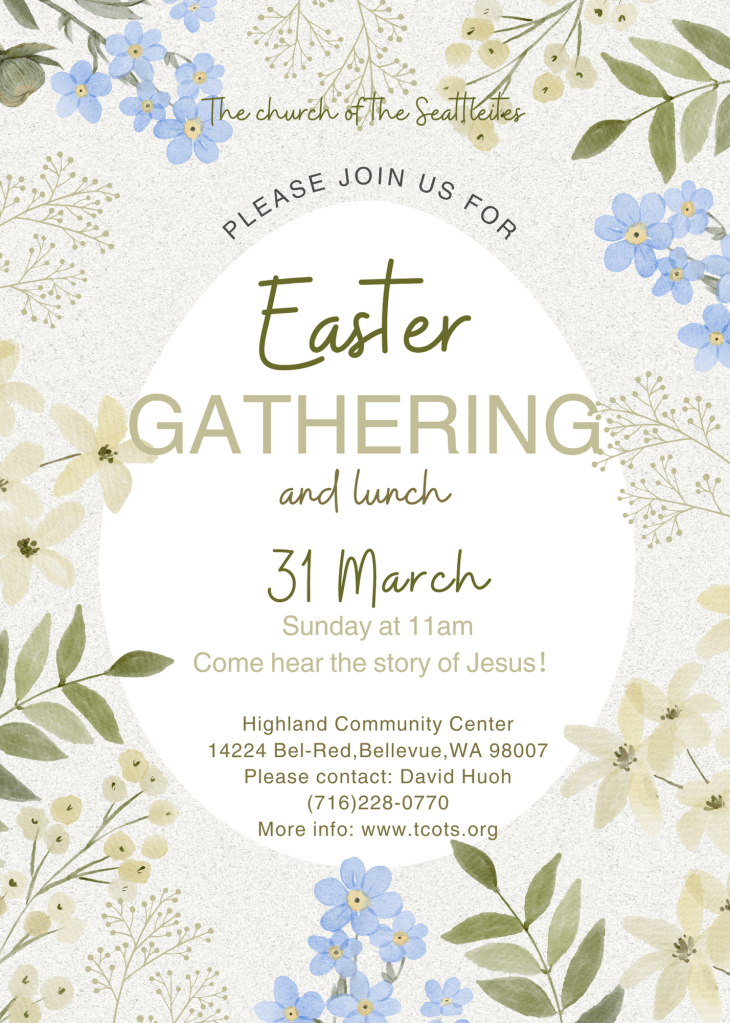 Join us at the Highland Community Center for an Easter celebration on March 31st @ 11am! We’ll enjoy hymn singing, share the story of Jesus, and discuss openly on faith.